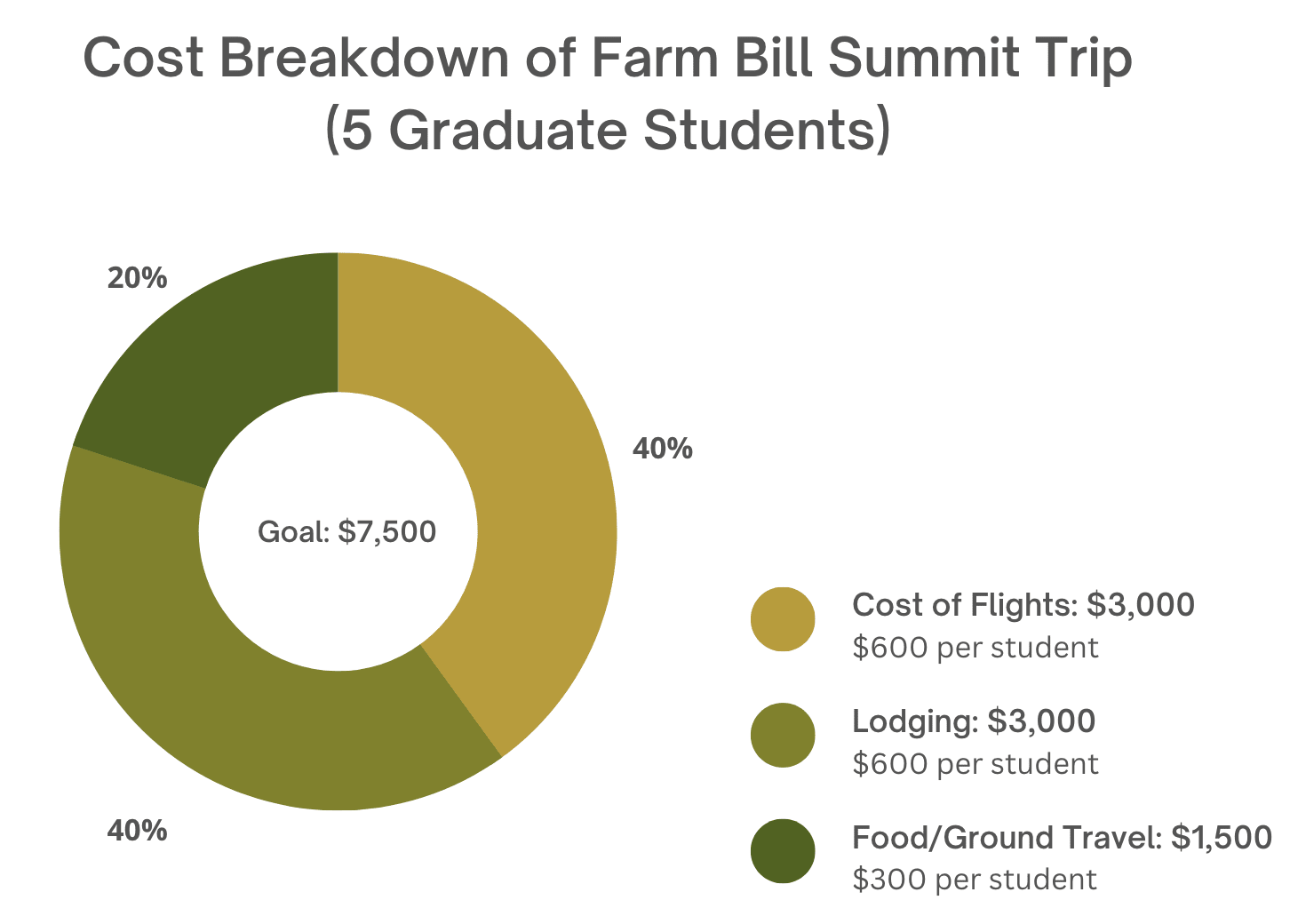 Students at previous Farm Bill Summit in DC.This spring, we are excited to bring five graduate students to the nation’s capital to attend Pointing the Farm Bill Towards Racial Justice: A Summit and Briefing from April 30 – May 2, 2023. BFI planned this event in partnership with the Federation of Southern Cooperatives/Land Assistance Fund (FSC/LAF), and American University’s Center for Environment, Community, and Equity (CECE) and their Antiracist Research & Policy Center (ARPC). This event will dive into the 2023 Farm Bill Reauthorization Process through a lens of racial justice, climate resilience, and rural and urban coalition building, and builds off a similar event held in 2017 that examined the policy, politics, and potential of the 2018 Farm Bill. We are thrilled to bring UC Berkeley graduate students into this major event that facilitates their learning and exposure to diverse policy environments. Where will my gift go? In order to make sure the cost of attending is not shouldered by the students, a gift of $1,500 can fund one graduate student’s travel, meals, and lodging costs, putting our goal of funding 5 graduate students at $7,500.