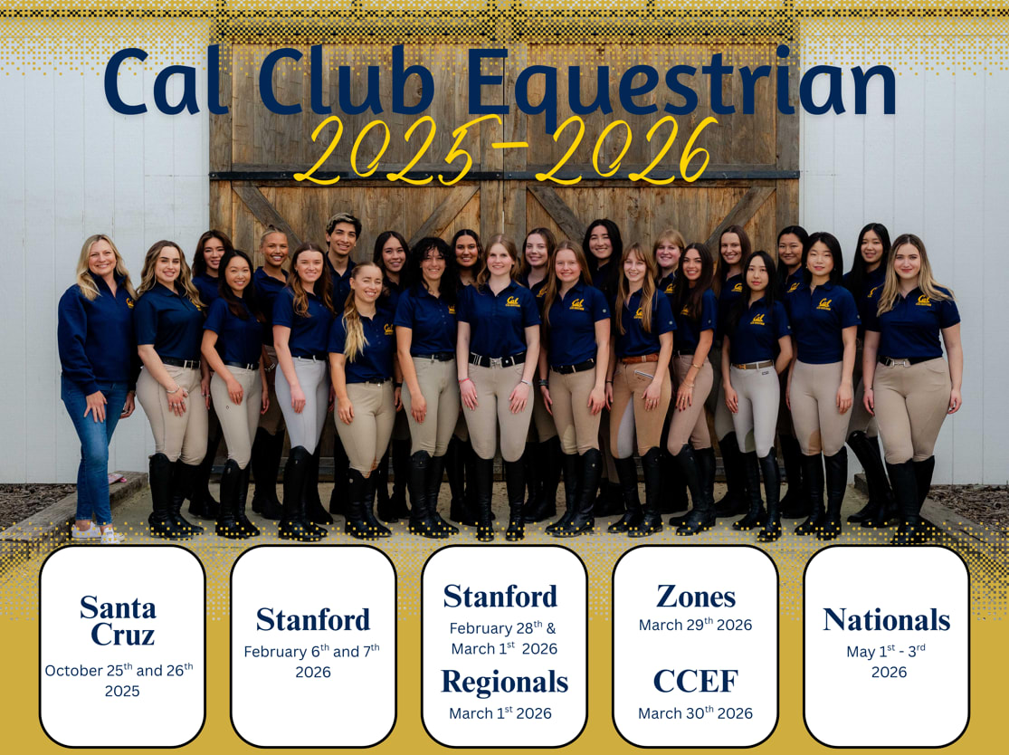 The Cal Equestrian Team is committed to creating a safe, fun, and competitive environment for students at UC Berkeley who share a love of horses. With first-class trainers and top-of-the-line facilities, the program strives to enable riders of all backgrounds to develop their horse knowledge while gaining confidence and leadership skills. Founded upon teamwork, horsemanship, and sportsmanship, the team works to provide a rewarding experience and lifelong friendships for all of its members.
