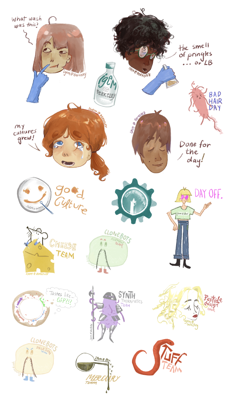 You will be given four of our iGEM stickers: ranging from an exclusive, unreleased version of our logo to cute CRISPR-themed designs created by our members. *Note: in order to receive your stickers, please make a public donation and email your address to us at directors@igem.berkeley.edu.